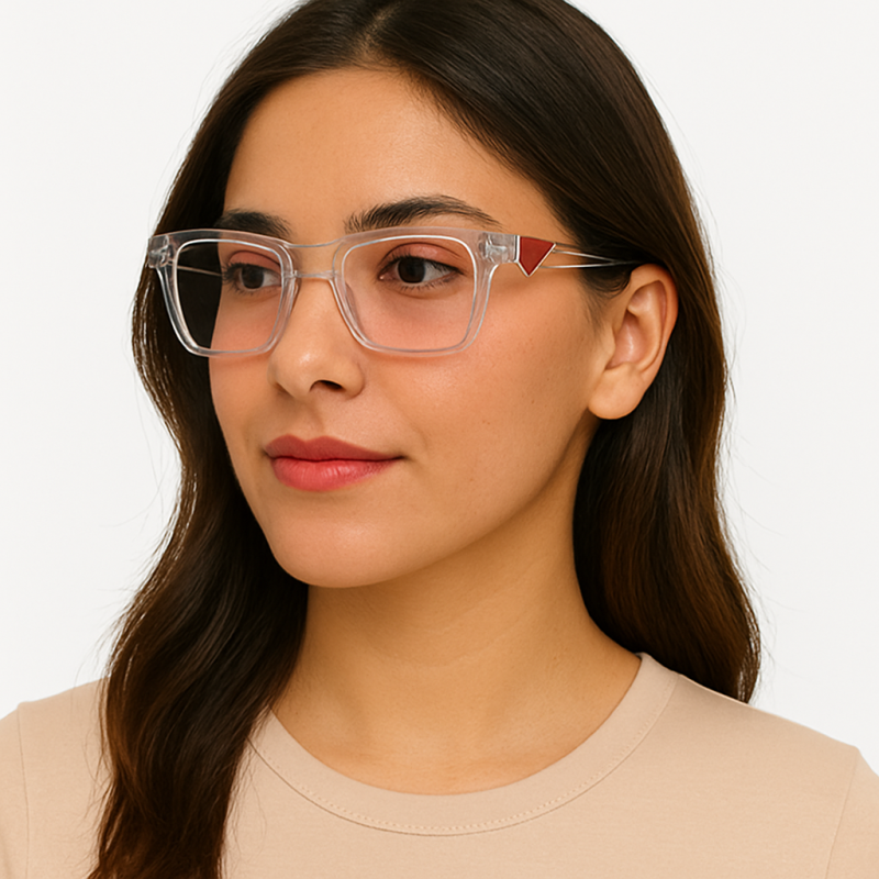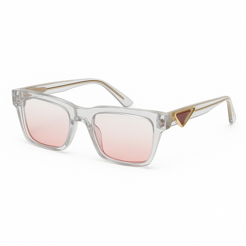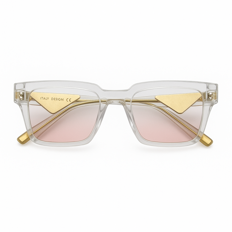 Κάνε εντύπωση με ένα μοντέρνο αξεσουάρ που συνδυάζει κομψότητα και χαρακτήρα. Αυτά τα γυαλιά ηλίου διαθέτουν διάφανο τετράγωνο σκελετό, ροζ φακούς με ντεγκραντέ εφέ και εντυπωσιακή μεταλλική λεπτομέρεια σε χρυσό και ροζ στους βραχίονες. Το ιδανικό κομμάτι για ξεχωριστές, σύγχρονες εμφανίσεις.