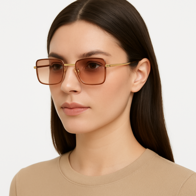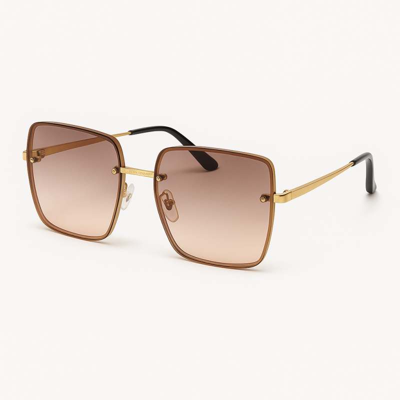 Μια τολμηρή πρόταση με άποψη. Αυτά τα γυαλιά ηλίου συνδυάζουν γεωμετρικό σχεδιασμό με λεπτομέρειες πολυτελείας. Ο χρυσός μεταλλικός σκελετός, η ανάγλυφη γέφυρα και οι απαλοί καφέ ντεγκραντέ φακοί προσφέρουν ένα εκλεπτυσμένο και ταυτόχρονα εντυπωσιακό αποτέλεσμα.