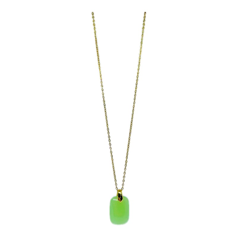 Κολιέ από ανοξείδωτο χάλυβα (ατσάλι) επιχρυσωμένα με 24Κ και πράσινη πέτρα