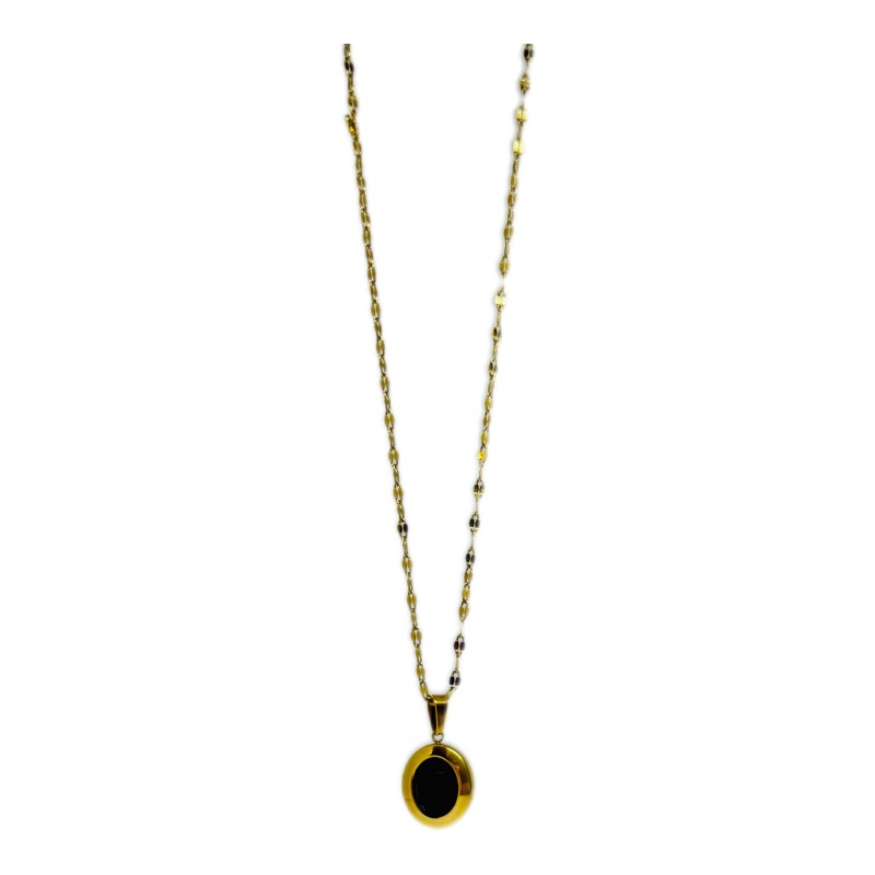 Κολιέ από ανοξείδωτο χάλυβα (ατσάλι) επιχρυσωμένα με 24Κ και μαύρη πέτρα