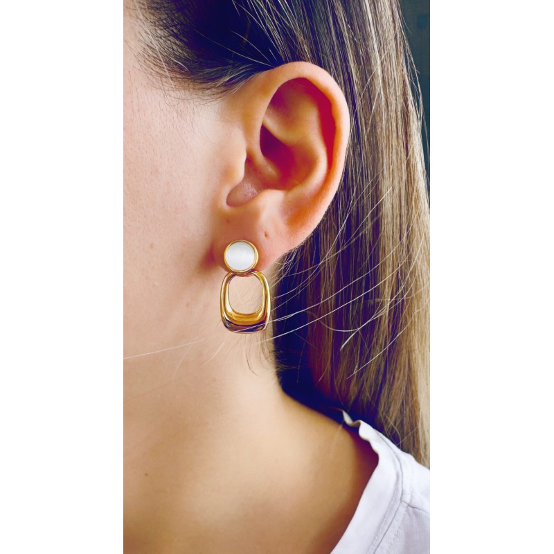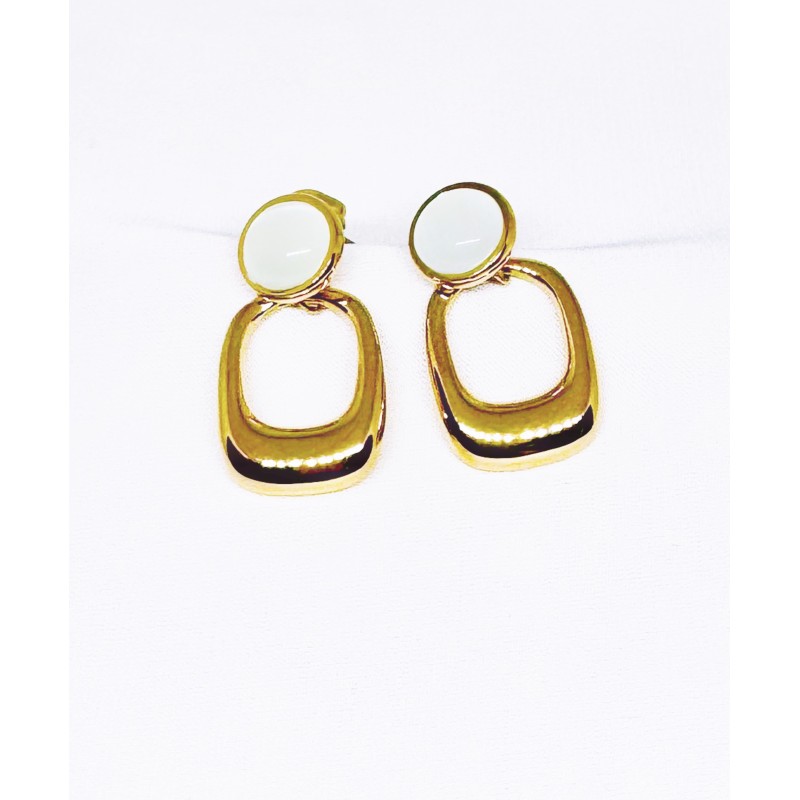 Σκουλαρίκια από ανοξείδωτο χάλυβα (ατσάλι) επιχρυσωμένα με 24Κ και λευκή πέτρα
