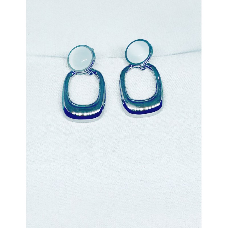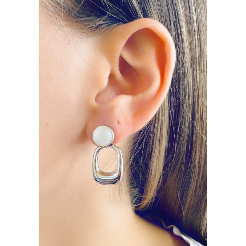 Σκουλαρίκια από ανοξείδωτο χάλυβα (ατσάλι) και λευκή πέτρα