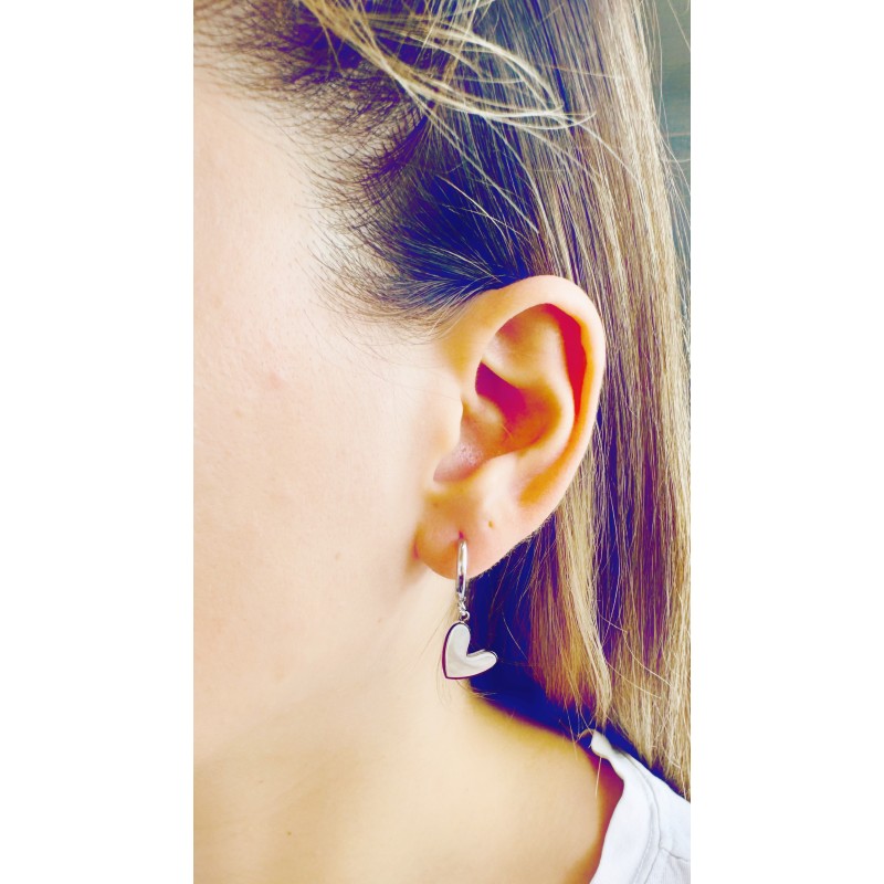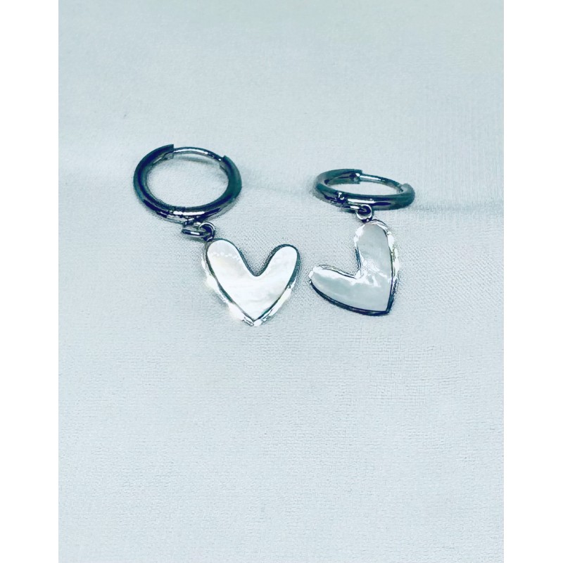 Σκουλαρίκια από ανοξείδωτο χάλυβα (ατσάλι) με λευκή πέτρα