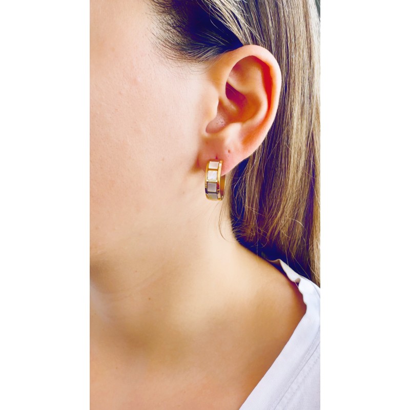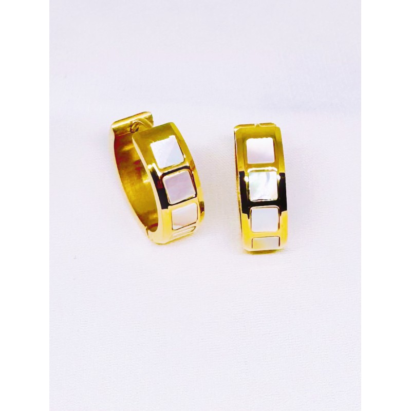 Σκουλαρίκια από ανοξείδωτο χάλυβα (ατσάλι) επιχρυσωμένα με 24Κ και λευκή πέτρα