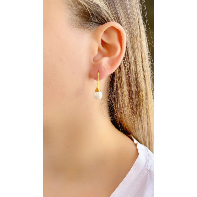 Σκουλαρίκια από ανοξείδωτο χάλυβα (ατσάλι) επιχρυσωμένα με 24Κ και πέρλα