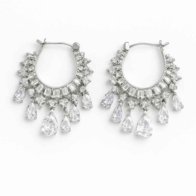 Σκουλαρίκια από ανθεκτικό ορείχαλκο, διακοσμημένα με λαμπερά κυβικά ζιρκόνια που θυμίζουν τη λάμψη του διαμαντιού. Ιδανικό για καθημερινές εμφανίσεις αλλά και για ιδιαίτερες περιστάσεις, προσθέτει μια διακριτική πολυτέλεια σε κάθε σου look.