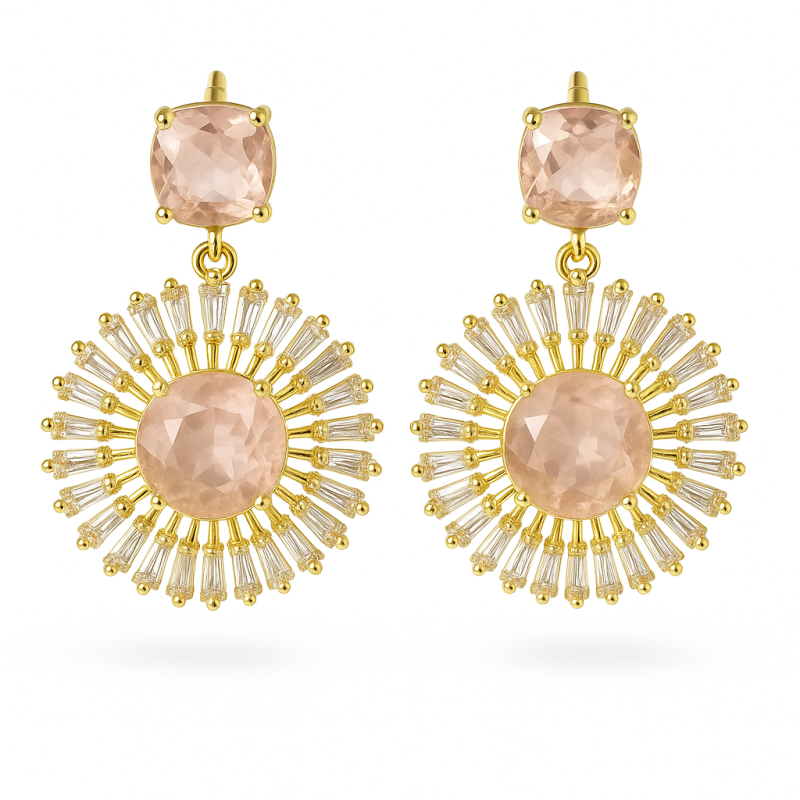 Σκουλαρίκια Αναβάθμισε το στυλ σου με αυτά τα εντυπωσιακά στρογγυλά σκουλαρίκια τύπου cluster, κατασκευασμένα από χαλκό και επιχρυσωμένα με ροζ χρυσό για μια ζεστή, ρομαντική λάμψη. Ο ιδανικός συνδυασμός κομψότητας και μοντέρνας αισθητικής που θα τραβήξει όλα τα βλέμματα.