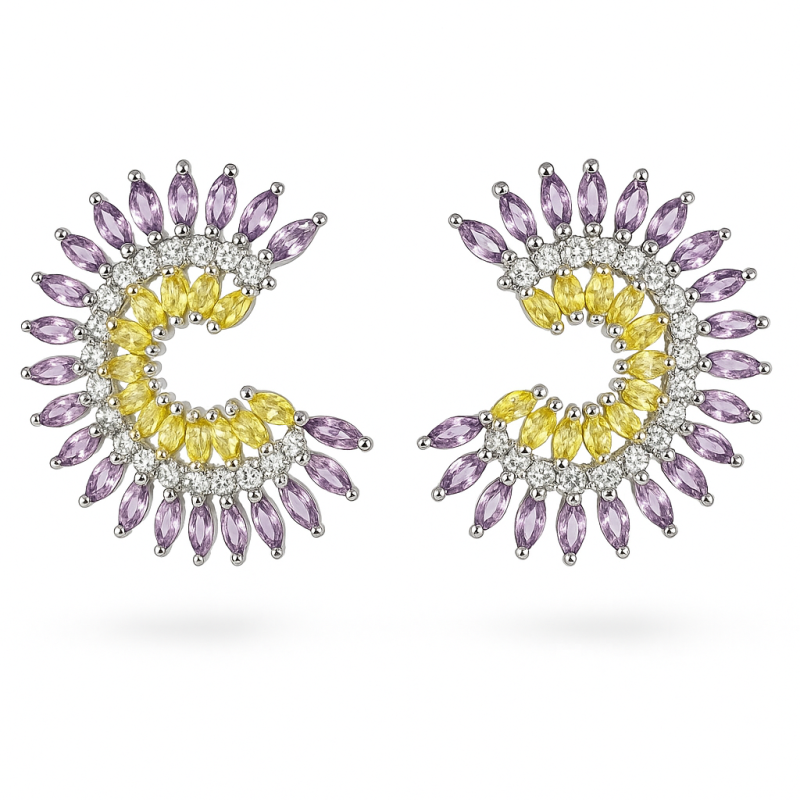 Σκουλαρίκια Αναβάθμισε το στυλ σου με αυτά τα εντυπωσιακά στρογγυλά σκουλαρίκια τύπου cluster, κατασκευασμένα από χαλκό και επιχρυσωμένα με λευκό χρυσό για μια ζεστή, ρομαντική λάμψη. Ο ιδανικός συνδυασμός κομψότητας και μοντέρνας αισθητικής που θα τραβήξει όλα τα βλέμματα.