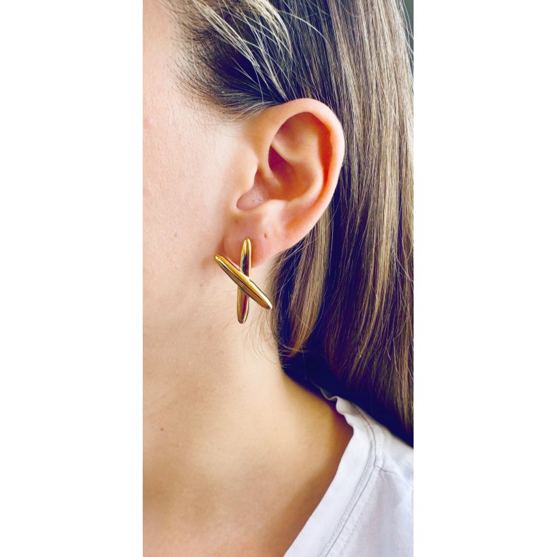 Σκουλαρίκια από ανοξείδωτο χάλυβα (ατσάλι) επιχρυσωμένα με 24Κ