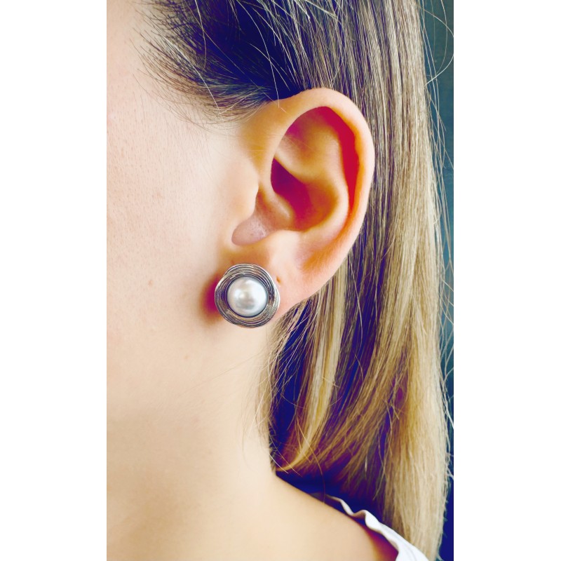 Σκουλαρίκια από ανοξείδωτο χάλυβα (ατσάλι) και πέρλα