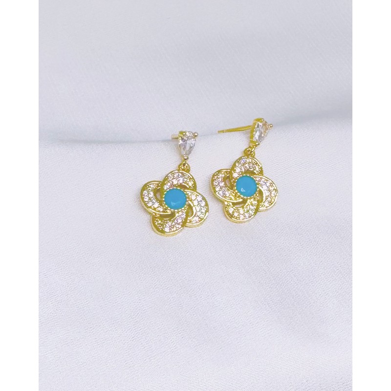 Σκουλαρίκια από ανοξείδωτο χάλυβα (ατσάλι) επιχρυσωμένα με 24Κ και τιρκουάζ πέτρα